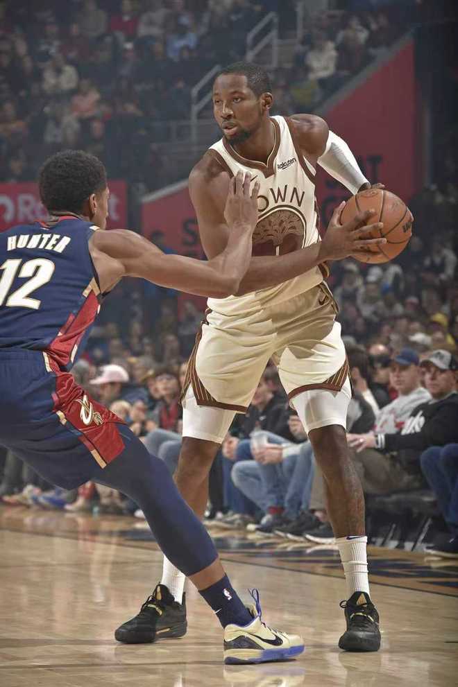 勇士過去兩場連輸雷霆與76人遭遇2連敗,騎士上一場主場130-117戰(zhàn)勝馬刺。本場勇士缺少庫里兄弟、巴特勒、追夢、霍福德與梅爾頓,騎士缺少阿倫、球哥、梅里爾、斯特魯斯與南斯。首節(jié)比賽,雙方開啟瘋狂打鐵模式,勇士只有23中4低至17.4%的投籃命中率,其中三分11中2。騎士也只有25中7低至28%的投籃命中率,其中三分10中0,首節(jié)結(jié)束勇士12-18落后騎士。勇士在上一場首節(jié)僅得到10分后,本場首節(jié)僅得到12分,連續(xù)兩場首節(jié)低迷。