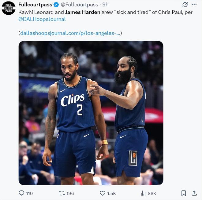 這場比賽的賽前快船隊(duì)又傳來了非常多的消息,倫納德、哈登兩人對克里斯-保羅已經(jīng)厭惡透頂,一開始哈登就不贊成保羅的加盟。